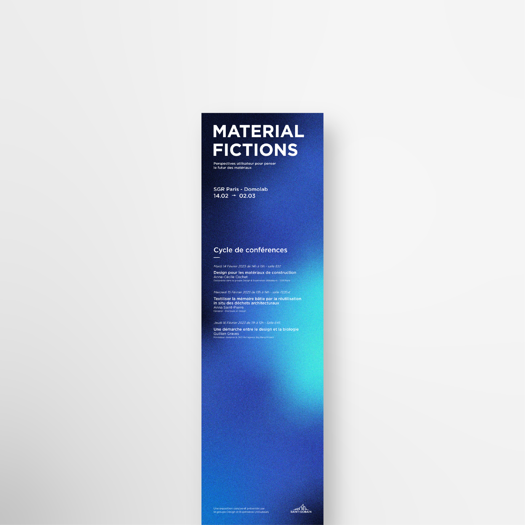 En 2023, nous avons organisé une exposition rassemblant les projets de l'équipe Design & Expérience Utilisateurs du centre de R&D Saint-Gobain Recherche Paris. L'objectif de cette exposition était de montrer comment le design permet de penser et de concevoir des matériaux autrement, en mettant l'usage au coeur de l'innovation.
