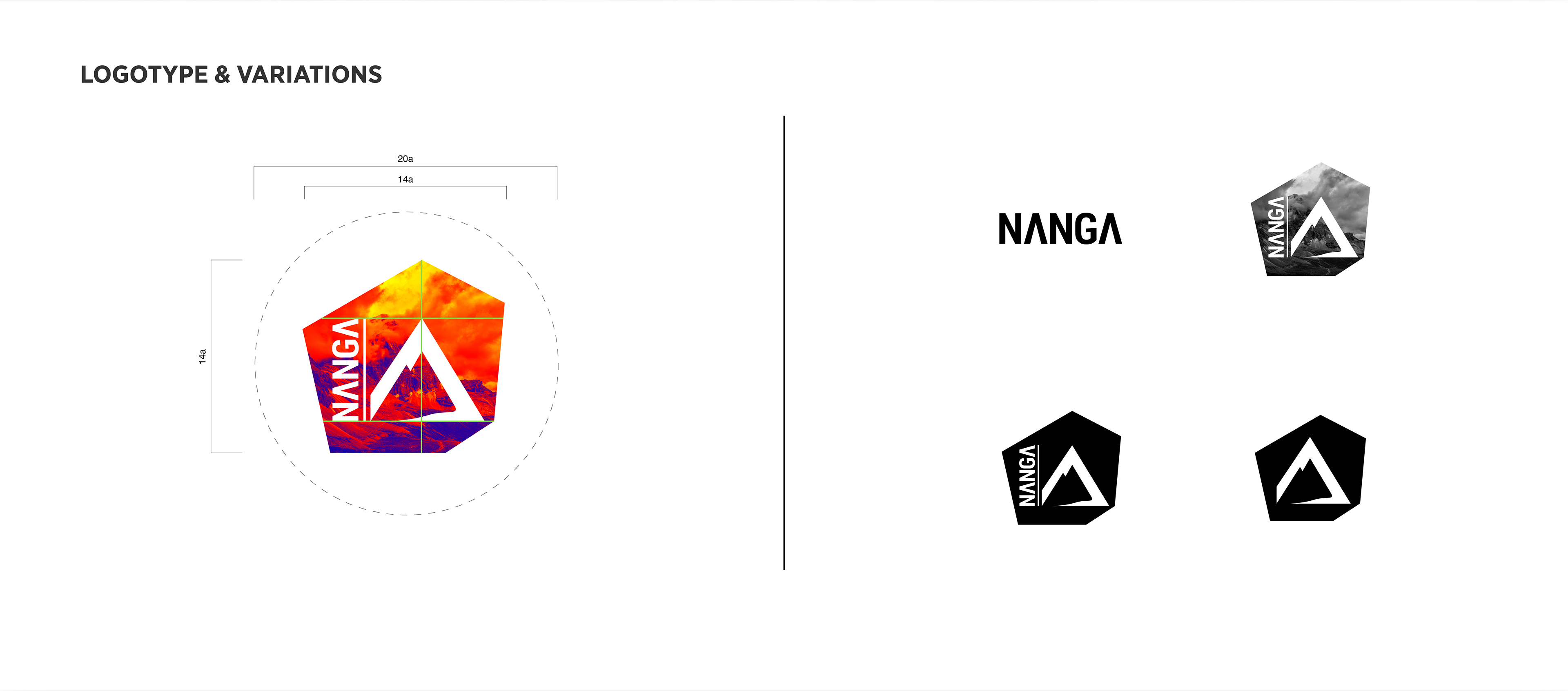 Le projet Nanga concerne la réalisation d'une charte graphique pour la marque sportive du même nom. Cette marque dynamique vise à promouvoir les sports alpins tels que la randonnée, l'escalade ou le ski.