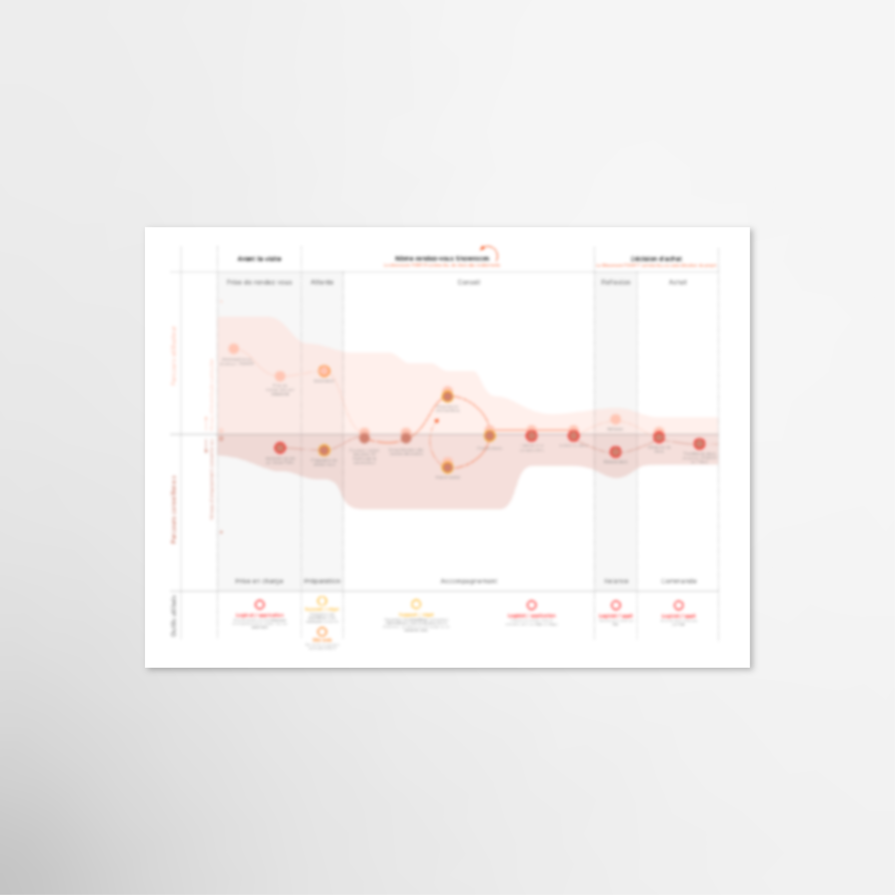 Ma contribution à l'équipe projet a permis la réalisation d'une phase importante de recherche utilisateur, l'analyse de toute la complexité du sujet puis la formalisation des analyses réalisées pour présenter les grands enseignements. Les livrables de cette phase ont été des fiches persona détaillés ainsi que leurs parcours utilisateurs relatifs. Ma contribution s'est arrêtée à cela, l'équipe projet a continué sur la base de recommandations résultantes de la phase de compréhension.